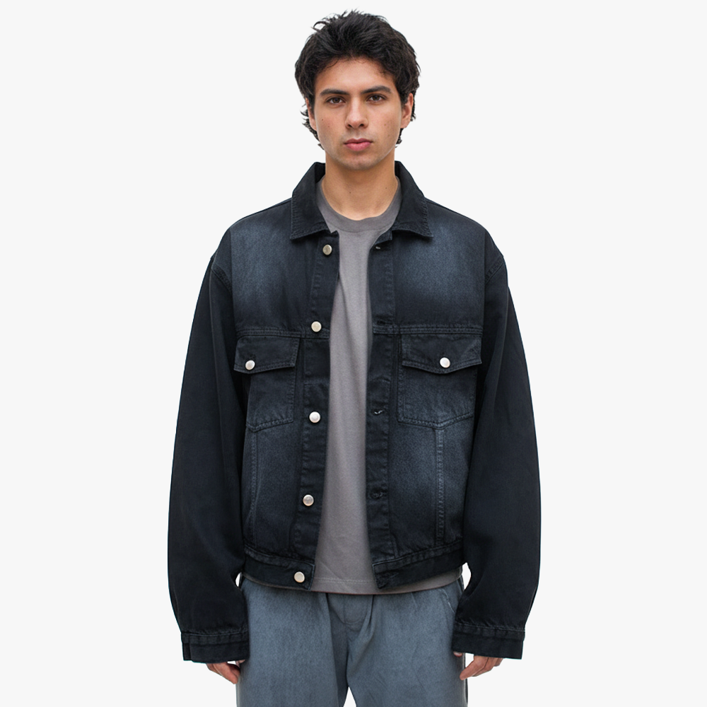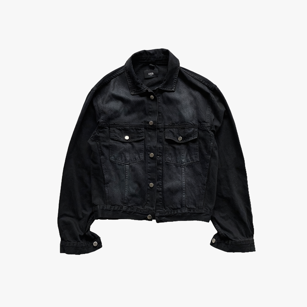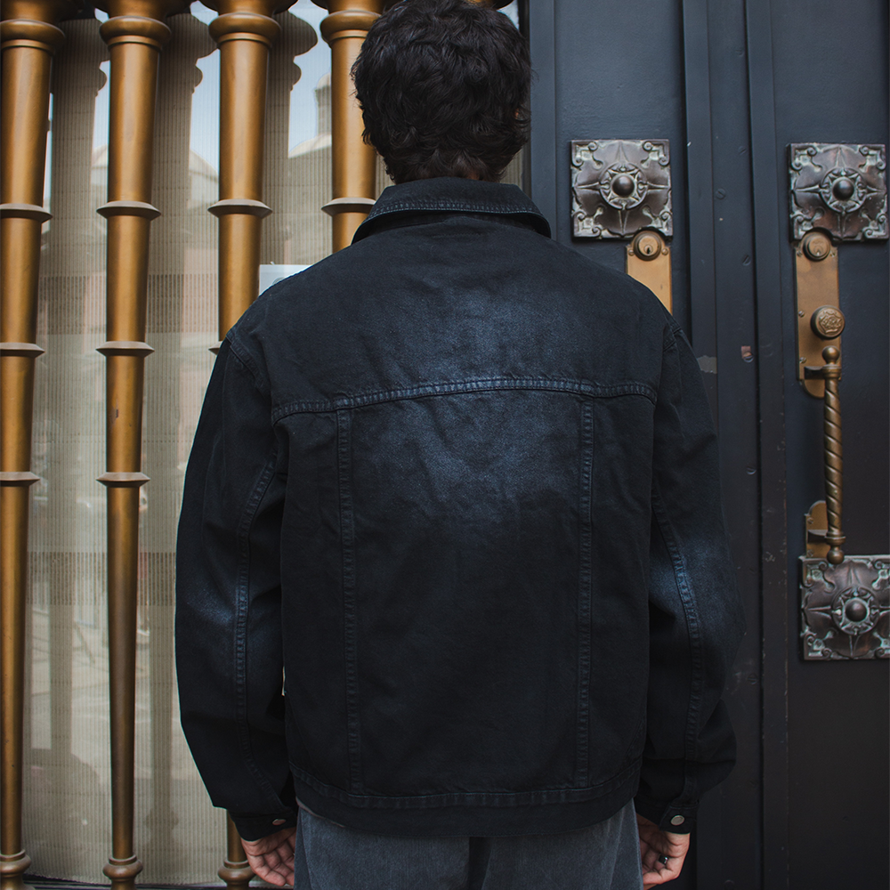 Denim jacket de 12oz, prenda pre lavada y procesada con un teñido totalmente negro, cuenta con 4 bolsillos delanteros.